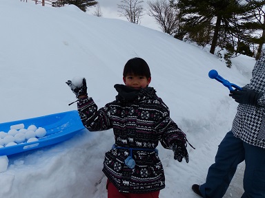 今回もしょうじろうの持ってきた雪球作り機(?)が活躍しました